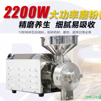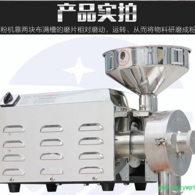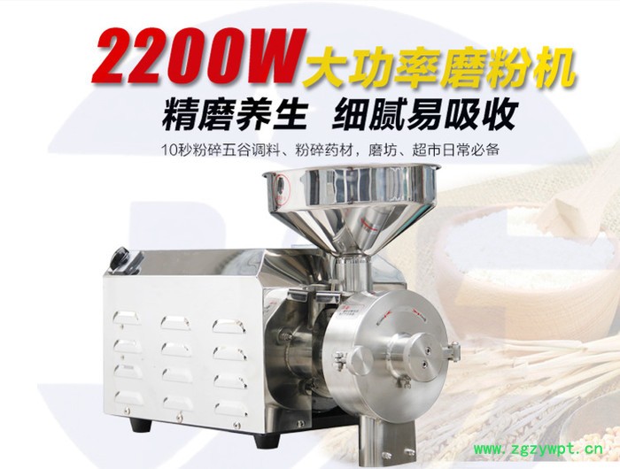 不锈钢五谷杂粮磨粉机由不锈钢精铸加工而成,配用特制双值电容异步电动机,动力强劲。 连续投料式作业,操作简单方便,结构豪华大方,噪音低,磨粉细腻,无粉尘。适用于超市、商场和店铺档口现场加工各种五谷杂粮和中药材使用。五谷杂粮磨粉机加工范围广:各种粮食、中药材含芝麻、核桃、大米、黑米、黄豆、红豆、绿豆、黑豆、花生、莲子、玉米、高粱、大麦、荞麦、燕麦、杏仁、茯苓、红枣、芡实、枸杞、薏仁、山楂、淮山、首乌、红豆、阿胶、乳香、菟丝子、当归、党参、黄芪、等等