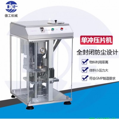 DP系列单冲压片机对物料利用率高、结构合理、操作方便、体积小、压力大、噪音低、片重差异小,物料的充填深度、压片的厚度均可连续调节,各项功能指标达到进口机水平。完全符合**制药卫生GMP要求,是科研院所、药厂工艺室及医院制剂室的**设备。该机在设计过程中采用多项新颖设计,从而保证了生产过程更加安全、规范。