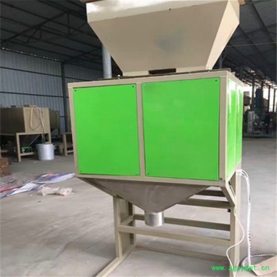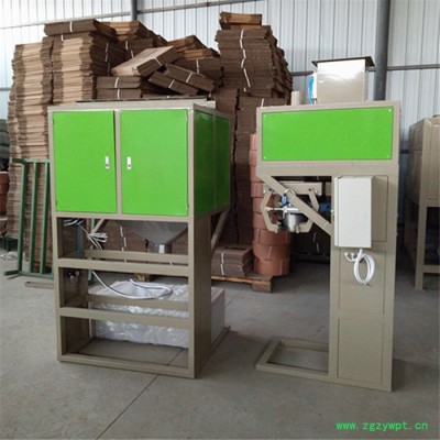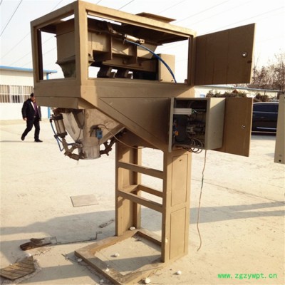 人工插袋后,夹袋器将袋子牢固的固定在出料口位置,进料斗开启时,物料开始进入计量出料斗,传感器开始计量并向控制仪表传送重量信号,当袋重快要达到设定值时,输出粗流关门信号,粗流关闭,细流继续给料,当达到设定值时,细流关闭。打开计量出料斗的卸料阀门,物料进入包装袋。当物料进入包装袋时,夹袋器开启,物料袋下落至下面的颗粒皮带机上。