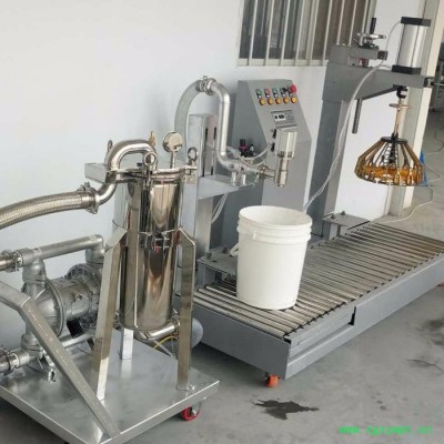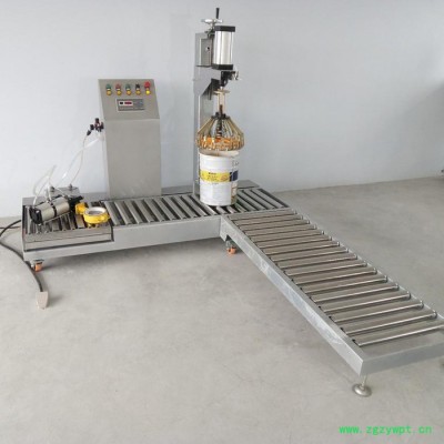 该系列灌装机主要由自动称重系统、自动出料系统、不锈钢滑道、一键压盖系统、电气控制系统等组成,从而实现人工放桶—自动灌装—自动压盖—成品存储等工作流程。