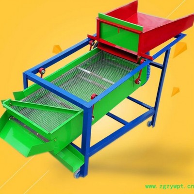 轻的杂叶或麦秸秆,上层筛的初次筛分再把大杂清理过,好的粮食(种子)直接落到下层筛网上,下层筛网会把粮食(种子)中的小杂.小石子.有缺陷的粮食(种子)直接漏掉,完好的粮食(种子)会从出料口筛分出来。该小型清粮机解决了扬场机的功能单一,不能有效去除石子.土块的缺陷,更能为清理.选粮食(种子)带来满意的效果。该机有占地小,移动方便,便以维修,除尘除杂效率明显,能耗低,使用简便等优点。真可谓是中小型粮食清理净选筛中的战斗机!