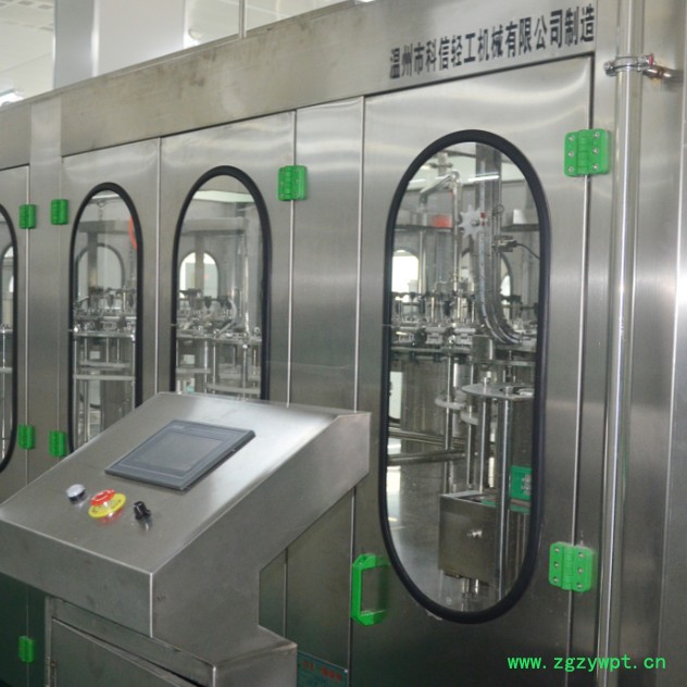 灌装方式采用了新型的微压灌装,使灌装速度更快更稳定,所以与同规格的机器相比本机的产量更高,效益更大。等压灌装机采用了先进的日本三菱可编程控制器(PLC)控制机器的自动运行,进瓶链道采用变频器调整,与主机变频器相互配合使进瓶运行更稳定可靠。 光电检测各部件的运行状况,所以自动化程度高,操作简便。在此基础上,本机变更灌装部分,可以形成低真空灌装方式。低真空灌装方式(Z型机),适用于玻璃瓶,灌装酒类、酱油等物料,其封口方式可以选配铝金属防盗盖和塑料盖。是饮料生产厂家理想的首先设备。
