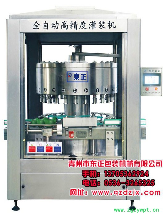 青州果汁饮料灌装机,青州手动液体灌装机,找青州东正包装青州市东正包装机械有限公司是液体灌装机械的专业生产厂家。联系人:曲经理,手机:13705362924,固定电话:0536-3265325,全国免费服务热线:4008087806,更多产品详情请登录www.qzdzjx.com。我公司技术力量雄厚,生产设备先进。生产的各种白酒、葡萄酒、调味品、矿泉水、饮料、农药生产线,包括白酒灌装机、过滤机、全自动刷瓶机、冲瓶机,灌装输送线、压盖机、防盗盖封口机、打塞机、缩帽机、缩标机、万能灌装机、负压式灌装机、高精度定量灌装机、打包机、微机控制系统等配套的液体包装生产线。尤其是白酒灌装机,既可成线使用,也可单机使用。适用各种新旧瓶型,大中小厂家。