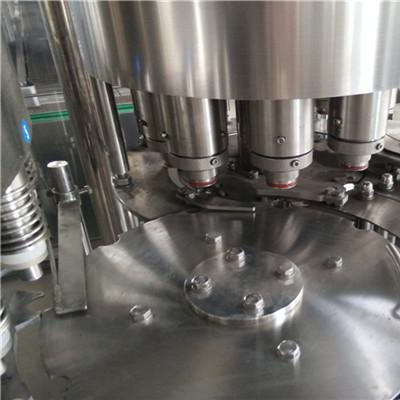 本系列设备用于聚脂瓶装各种纯净水、矿泉水的生产。在一机上实现冲瓶、灌装、封盖。整机设计科学合理,外形美观,功能齐全,操作维修方便,自动化程度高。综合采用意大利、德国先进技术。灌装速度快,液面控制稳。采用风送进瓶、夹瓶口、冲洗、卡瓶口灌装、封盖、不受瓶子高矮限制,只要瓶口、瓶盖相同随意更换瓶形,更换一下拔轮板即可。油尼龙齿轮传动,噪声小,整机运转平稳。采用磁力扭矩式拧盖头,实现抓盖、拧盖功能。拧盖力矩无级可调,具有恒力矩旋封塑盖功能,且不伤盖,封口严密可靠。水平回转式气力理盖器,具有不损坏瓶盖表面,料斗内缺盖发信号自动补充盖等功能。整机采用PLC电脑程序控制及人机界面触摸屏按钮,具有料缸内液面自动控制,无瓶不灌装,无瓶不加盖功能,并有拨瓶星轮卡瓶错位停机,盖滑槽内缺盖停机等功能。