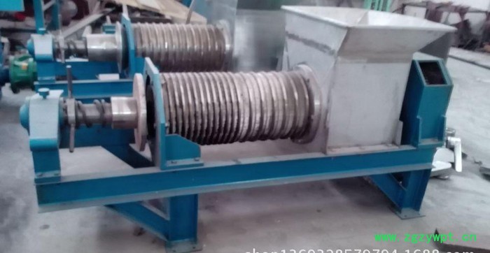 双螺旋连续式压榨机为可移动双螺旋连续式压榨机,与物料接触的材料均为**耐酸碱不锈钢,它适用于葡萄、沙棘果、石榴、生姜、菠菜等含纤维较多的水果和蔬菜的汁液榨取,是中小型果蔬汁或果酒生产企业的必备设备之一。 该机由机架、传动系统、破碎系统、进料部分、榨汁部分、液压系统和护罩以及电器控制部分等组成。压榨螺旋与主轴一起旋转,物料输送螺旋套在主轴上与压榨螺旋作反向旋转。 液压系统由柱塞式油泵提供压力油,通过压力可调式溢流阀控制液压系统压力的高低;两个油缸固定于尾部支承座,通过活塞杆伸出控制物料出口的大小,排渣的干湿可根据要求随时控制。 YZJ破碎式压榨机为可移动双螺旋压榨机,它是在1.5T压榨机基础上根据客户需要经技术研制开发在进料箱口处加配一套破碎式挤压辊使物料先破碎后压榨,更好的达到提汁效果,特别适合大枣、杏、梨等水果汁液榨取