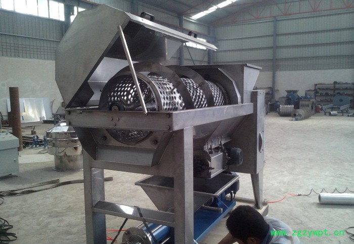 1、螺旋定量进料。先除梗后破碎。