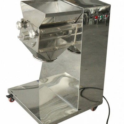 摇摆式颗粒机制得的颗粒一般粒径分布均匀,有利于湿粒均匀干燥。它的主要特点为旋转为旋转滚筒的转速可以调节,筛网装卸容易,还可适当调节其松紧。机械传动系统全部密封在机体内,并附有调节系统,提高了机件的寿命。但由于成粒过程是由滚筒直接压迫筛网而成粒的,物料对筛网的挤压力的摩擦力均较大。使用金属筛网时易产生金属污染处方,而尼龙筛网由于容易破损需经常更换,在使用时应加以注意。