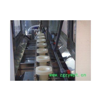 QGF型桶装机是5加仑桶装水生产的主机设备。有机架、水箱、管道、水泵、气缸、传动、电器等组成,完成空桶冲洗,灌装、压盖等动作,通过多道冲洗工序,定量灌装,自动带盖压盖,整机所有动作电脑控制,实现稳定的冲洗效果**的灌装容量,密封的压盖效果。
