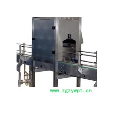 自动拔盖=>自动外刷=>上桶=>消毒冲洗=>灌装=>压盖=>输送=>套膜=>缩膜=>喷码=>自动套袋=>码垛