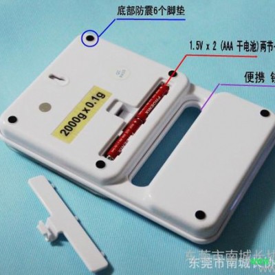 超大秤盘设计,外观时尚大方,实用方便使用环境温度: 0°C - 40°C (32°F - 104°F)重量单位: g、kg、lb、oz自动关机时间: 1分钟电源:两节7号1.5V干电池供电,外接电源供电低电压显示: LO_计数功能:方便称取体积小、重量相等但数量较多的物品,直接显示数量超载显示: O_Ld秤盘尺寸:120*130mm产品尺寸:220*130*30mm