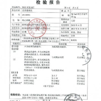 【用法用量】本品100ml兑水1500斤,重症加倍,连用3——5天。