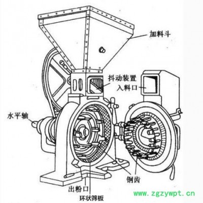 各种含油量不高的五谷杂粮以及其他一些硬性、脆性的物料。本机利用活动齿盘和固定齿盘间的相对高速运转,使被粉碎物