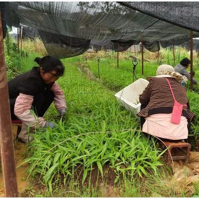 1、选地整地:选择疏松肥沃的沙质壤土和腐殖质壤土,温暖、稍阴湿环境,不耐寒。排水良好的山地栽种时,宜选阴坡生荒地栽植。把土翻耕20厘米以上,施厩肥和堆肥,每亩施农家肥1000千克,没有农家肥可撒施三元复合肥50公斤。再翻地使土和肥料拌均匀。栽植前浅耕一次,把土整细、耙平、作宽130~150厘米的高畦。
