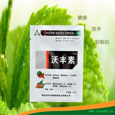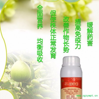 本品依据中医调理理论为基础,根据作物生长期需肥规律及作物茎叶部吸收转化能力,进行养分补给和转化功能调理。从中草药中提取植物活性苷肽成分,结合壳聚糖、微量元素等多种作物生长发育期所需养分,具有调节作物生长的作用:苗壮,蔓茎粗壮,长势旺盛,防止僵苗、烂苗、弱苗、死苗、烂根、分解农药残留、缓解药害;促进光合作用:叶绿素增加,叶面厚实有光泽,防止作物生长期的花叶、小叶、曲叶、卷叶、缩叶、蕨叶、矮化等缺素症状;提高免疫功能:抗旱、抗寒、抗涝、抗盐碱、抗病。