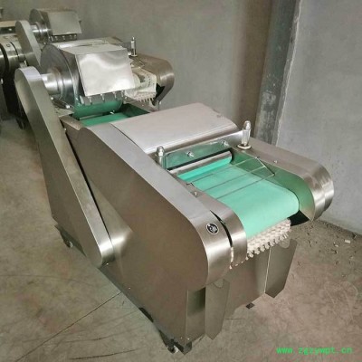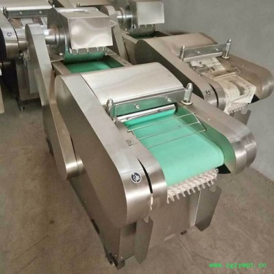包含单切机的所以功能的同时,也可切圆形如土豆、萝卜等。可将根、茎、叶等蔬菜加工成片、丝、丁、菱、曲线、花丁、花片等。切片装置用于硬菜(萝卜、土豆、水果、薯类)的切片,厚度在1-10毫米内自由调整;往复竖刀将刀成的菜片或软菜(韭菜、芹菜)切成直丝或段、曲线丝、方丁(或形刀)输送带每次移动距离1-20毫米自由调整。所调整量即为丝段的宽度;应注意被切菜直径较粗时(大于30毫米)出片效果才好,便于切丁,直径小时制的片或丁将会杂乱。被切菜加工面平整光滑、规则,组织完好,保持手工切制的效果。