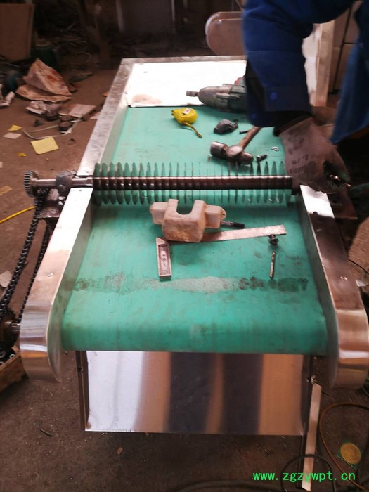 本机模拟手工切菜,切丝,切段等原理,采用电机皮带变速方式实现高低运转。可以高效能的完成2-25mm切丝需求,料头的离心式切片构造可以完成硬质瓜果蔬菜等的切片功能。传送带装置可以将料头的产物直接输送到刀架下。通过不同的刀片将片,叶,根,茎等蔬菜或其他制品加工成片,丝,丁,块,条等多种形状。更多功能请买家自己体验! 使用方法: 1.将机器放置在水平的工作场地上,确保机器下边四脚平稳,可靠,不晃动.仔细检查旋筒内有无杂物,如有异物清理干净,以免引起机器损坏.对各部件进行检滴油.紧固件是否使用中松动,开关线路是否破损. 2.为确保安全,必须在接地标记处可靠接地,电源接头必须安装漏电保护器!!! 3.机器工作时,严禁将手伸入机器内,在加工过程中勿用湿手按开关。 4.在进行清理拆卸前,首先断开电源,使机器停止运转。 5.轴承每3个月更换1次钙基润滑脂。 6.在使用过程中,若出现异常情况,应迅速关闭电源开关,待故障排除后重新启动,使之正常工作