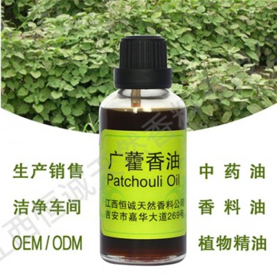 由唇形科草本植物广藿香的干燥堆放三天并发酵后再经干燥的或微干的叶子经高压蒸汽蒸馏24h而得。新鲜的广霍香叶几乎无香气,只有在发酵和干燥后才产生精油。新造的广藿香油可能带有所谓的蒸馏味和草焦味,放置一段时间后有使好转,香气会更加醇厚。