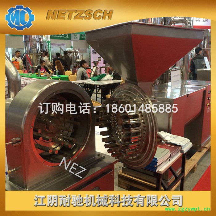 本机利用活动齿盘和固定齿盘的高速相对运动,使被粉碎物经齿盘冲击、摩擦及物料彼此间冲击等综合作用获得粉碎。本机结构简单、坚固、运转平稳、粉碎效果好,被粉碎物可直接由主机磨腔中排出,粒度大小通过更换不同孔径的筛网获得,另外该机为不锈钢制作。机壳内壁全部经机加工达到表面平滑,改变了以前机型内壁粗糙、积粉的现象,使药品、食品、化工等生产更能符合**标准,达到“GMP”的要求。
