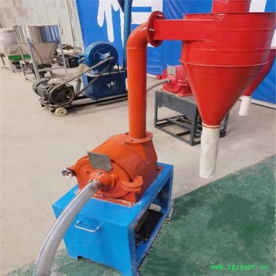 物料由料斗经螺旋输送器进入粉碎室,被高速旋转的刀片剪粉碎,通过负压风运的方法把物料运入旋风分离器,旋风式除尘器、排出物料达到产品的要求。