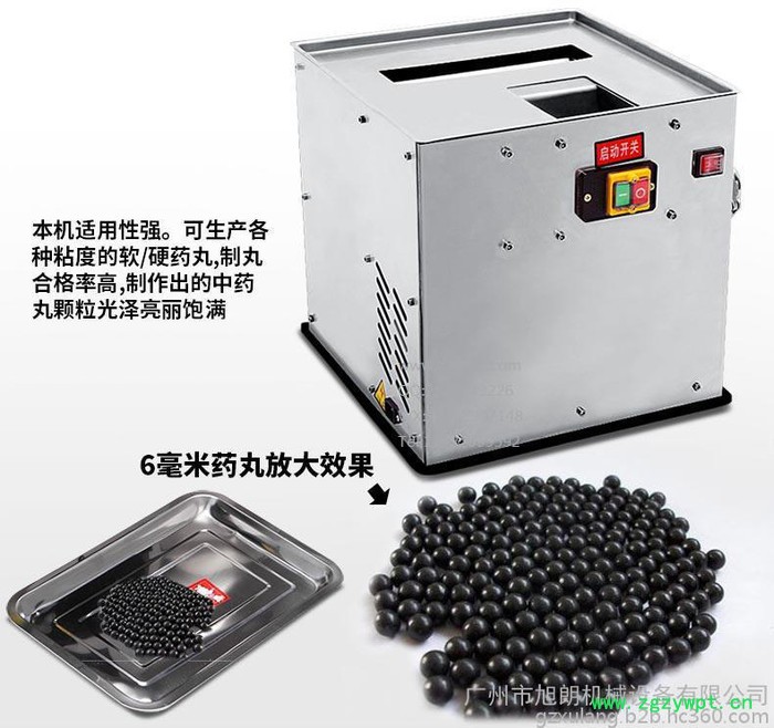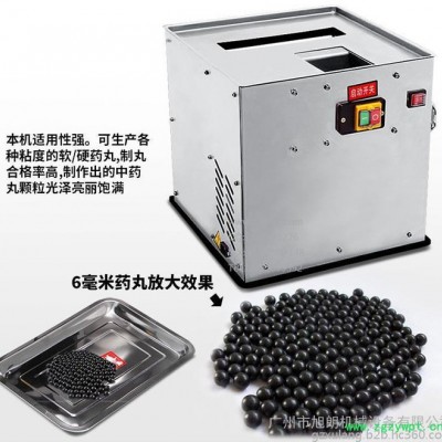 新型高效中药制丸机是旭朗公司历经3年研发,,已申请多项,同时也请客户认清是“旭朗”品牌, HK-93C新型高效中药制丸机,制丸效率比目前普通制丸机要快5-10倍,具有直接出条,更有辅助揉药团功能,揉出的药团更有可塑性,彻底解决揉药难问题,制丸更换不同大小药丸模具更方便,清洗也更简单,整机不锈钢制造,药丸成型滚轴经进口数控车床加工,,制成的药丸圆润平滑,每粒药丸质量平均,可以不用再使用抛光机,操作简单迅速,保养方便,丸粒大小随用户要求定制皆可(3至12.5毫米)适用范围:制药厂、医院、药店、诊所、食品行业。适用范围及功能:中药水丸、蜜丸、各种小丸,并有揉药团功能,标配6MM规格,可另外购买3-12.5mm药丸模具。