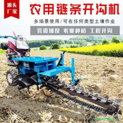 自走式链式开沟机采用链条带刮板式结构,可以在任何类型的土壤上进行挖沟、开槽作业。自走式链式开沟机可以用于农田种植和收获,比如山药、牛蒡、甘蔗、大葱等农作物,极大的方便了农民种地。自走式链式开沟机还可以用于农田灌溉开沟,农田排水开沟,帮助农民朋友机械化管理农田。
