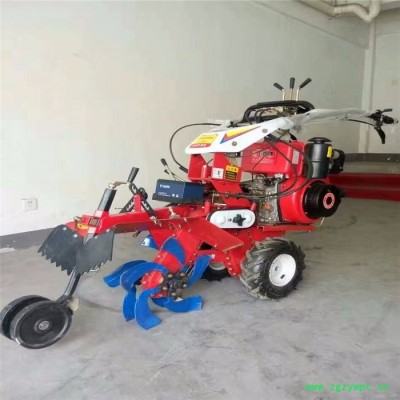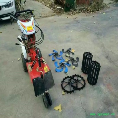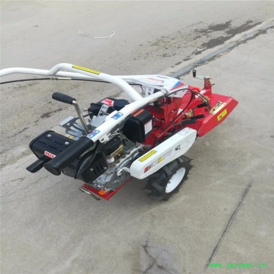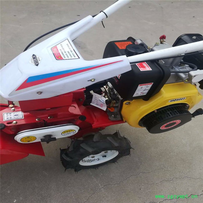 本机器包括机架、可调高低扶手,机架上设有(风冷或水冷)柴油机或汽油机、机架和扶手上设置有变速箱,变速箱的输出轴上设置有能够沿轴移动的驱动轮或链轨.传动方式主要有:全齿轮传动、皮带传动、链条传动三种传动方式.该机具有重量轻,油耗低、相对功率大,结构紧凑、机动性强、操纵轻便灵活的特点。可爬坡、越埂、阶梯性强。广泛适用于平原、山区、丘陵的旱地、水田、果园、菜地、烟地的深旋耕、浅旋耕、犁耕。配上相应机具可进行旱地旋耕、水田旋耕、抽水、开沟、喷淋、喷药除草碎土等作业,还可牵引拖车进行短途运输,是大中型农机无法**的多功能田园管理机,工作稳定可靠、使用寿命长、维修方便等特点。是进入农民家庭理想的田园管理机。