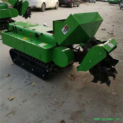 多功能 履带式开沟施肥机安装上不同的配件可以进行单独旋耕、回填、单独开沟、施肥、也可混合搭配使用。产品结实耐用,性能优越,操作方便.耐用:机身加厚,密,履带式行走,可进行原地转向。刀具都是加厚75号猛钢锻造,非常耐磨耐用,工作效率高.