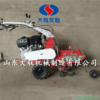 本机器包括机架、可调高低扶手,机架上设有(风冷或水冷)柴油机或汽油机、机架和扶手上设置有变速箱,变速箱的输出轴上设置有能够沿轴移动的驱动轮或链轨.传动方式主要有:全齿轮传动、皮带传动、链条传动三种传动方式.该机具有重量轻,油耗低、相对功率大,结构紧凑、机动性强、操纵轻便灵活的特点。可爬坡、越埂、阶梯性强。广泛适用于平原、山区、丘陵的旱地、水田、果园、菜地、烟地的深旋耕、浅旋耕、犁耕。配上相应机具可进行旱地旋耕、水田旋耕、抽水、开沟、喷淋、喷药除草碎土等作业,还可牵引拖车进行短途运输,是大中型农机无法**的多功能田园管理机,工作稳定可靠、使用寿命长、维修方便等特点。是进入农民家庭很理想的田园管理机。