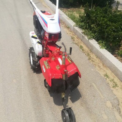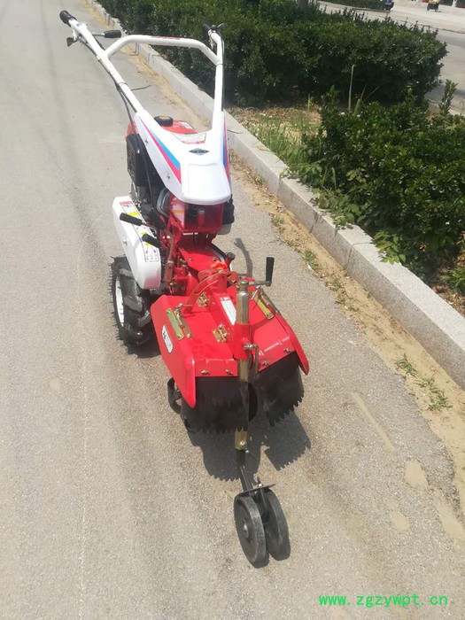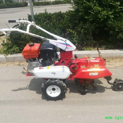 本机器包括机架、可调高低扶手,机架上设有(风冷或水冷)柴油机或汽油机、机架和扶手上设置有变速箱,变速箱的输出轴上设置有能够沿轴移动的驱动轮或链轨.传动方式主要有:全齿轮传动、皮带传动、链条传动三种传动方式.该机具有重量轻,油耗低、相对功率大,结构紧凑、机动性强、操纵轻便灵活的特点。可爬坡、越埂、阶梯性强。广泛适用于平原、山区、丘陵的旱地、水田、果园、菜地、烟地的深旋耕、浅旋耕、犁耕。配上相应机具可进行旱地旋耕、水田旋耕、抽水、开沟、喷淋、喷药除草碎土等作业,还可牵引拖车进行短途运输,是大中型农机无法**的多功能田园管理机,工作稳定可靠、使用寿命长、维修方便等特点。是进入农民家庭田园管理机。