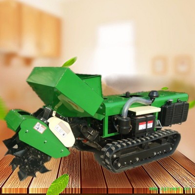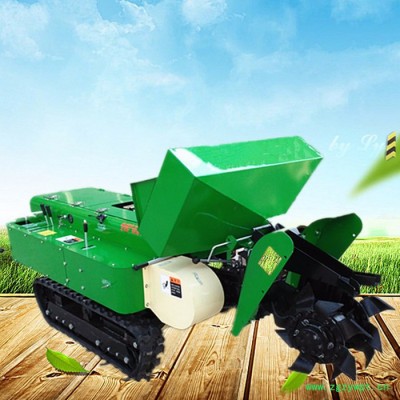 柴油电启动回填机 多功能履带式山药开沟机 动力整地机大葱开沟机 本机主要有六大功能:开沟施肥自动回填一次性完成(化肥)、单独开沟施土杂肥、单独除草、更换回填和旋耕装置后可进行回填和旋耕作业,更换风扇可以进行喷雾式打药功能;该机体积小,重心低,操作灵便,可原地转向,适用于果园葡萄、果树、枸杞、蓝莓等经济作物的开沟施肥作业。适用性强:适用各种山地,丘陵、平原、旱田、大棚、果园、及狭窄地作业,省心。适合各种土质:冻土、硬土、粘土、黑土地,山地,软土均可使用. 履带式开沟施肥机可以实现大型机械无法进入的果园、小块土地、大棚、茶园、丘陵、山地等不同的地形和土质进行作业。