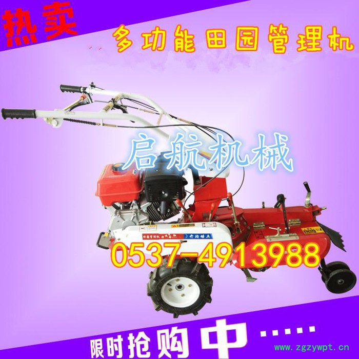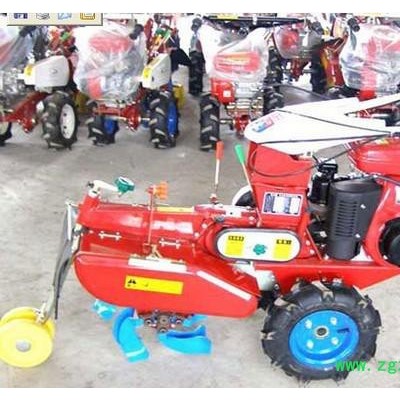 本机器包括机架、可调高低扶手,机架上设有(风冷或水冷)柴油机或汽油机、机架和扶手上设置有变速箱,变速箱的输出轴上设置有能够沿轴移动的驱动轮或链轨.传动方式主要有:全齿轮传动、皮带传动、链条传动三种传动方式.该机具有重量轻,油耗低、相对功率大,结构紧凑、机动性强、操纵轻便灵活的特点。可爬坡、越埂、阶梯性强。广泛适用于平原、山区、丘陵的旱地、水田、果园、菜地、烟地的深旋耕、浅旋耕、犁耕。配上相应机具可进行旱地旋耕、水田旋耕、抽水、开沟、喷淋、喷药除草碎土等作业,还可牵引拖车进行短途运输,是大中型农机无法**的多功能田园管理机,工作稳定可靠、使用寿命长、维修方便等特点。是进入农民家庭**的田园管理机。