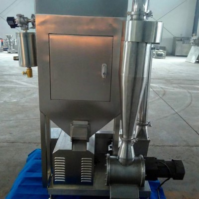 CRF-520型微粉碎机组是消化吸收了国外先进技术,结合实际情况研制成功的一种涡流式粉碎机该机具有粒度小、温升低等特点。机组由螺旋上料机、粉碎主机、微粉收集器、螺旋卸料器、脉冲布袋收集器、输送管道及电器控制柜及离心风机组成。物料在主机内部停留时间短,可防止过度粉碎及温度升高。粉碎后,粉体在负压作用下,进入收集器,经排料阀排出。该机组具有技术性能稳定,噪音低、耗电省、生产率高、造型美观等特点,是医药、食品、化工、涂料、农药等行业理想的微粉碎设备。