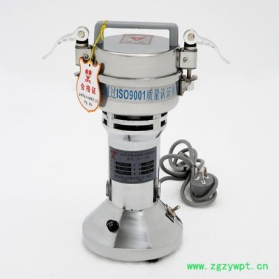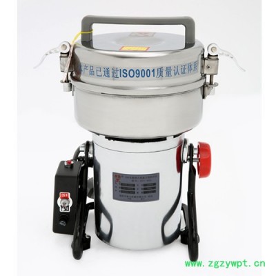 中药粉碎机由不锈钢上盖下体粉碎室构成,螺扣式封闭。通过直立式电机的高速运转带动横向安装的粉碎刀片,对物料进行撞击、剪切式粉碎。粉碎物体由于在密闭的空间内被搅动,所以粉碎效果相对均匀,适合干性物料。该机具有奖杯式和摇摆设计,方便对物料的倾倒和清理。
