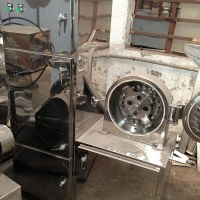 主要用途: 该机组适用于制药、食品、化工等行业,具有风冷、无筛网等多种性能,它不受物料粘度、软硬及纤维等限制,对任何物料起到较好的效果。特别适用于粉碎带纤维的中药材,带一定油脂性的物料。数据咨询QQ140483976 工作原理: 该机由加料斗、分级轮、粉碎刀片、齿圈、粉碎电机、出料口、集料箱、吸尘箱等部分组成,物料由加料斗进入粉碎室,通过高速旋转的刀片进行粉碎,调节分级轮与分级盘的距离来达到要求的物料细度,达到要求的料从粉碎室引到集料箱布袋中,没有达到要求的料继续在粉碎室中粉碎。集料箱布袋产生的粉尘由吸尘箱收集。该机组按“GMP”标准设计,结构简单、操作方便、噪音小、产量高,机器采用**不锈钢材料制造,粉碎过程中无粉尘飞扬。 技术参数: