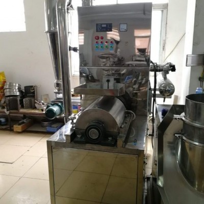 含油量特别高的物料如芝麻、核桃、花生、杏仁、瓜子仁等则无法单独粉碎。如需粉碎含油量特别高的物料,需要将其与其它不含油或者含油量低的物料混合在一起,含油量高的物料比例尽量低于25%。如果有大颗粒的高含油量物料,用超微粉碎机组粉碎前,需用破碎机或者不锈钢粗碎机进行破碎(粗碎),再用超微粉碎机组进行超微粉碎。