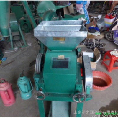 9.花生专用轧胚机,机器前段有大螺丝手把可随意调节粮食物料的厚薄程度,严禁用手送料应先关机电源再找原因。