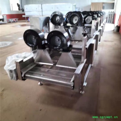 风干机采用大风量低噪音风机自然风吹干。计为多次翻转输送,并有逆反风装置防止出现吹干死角,吹干效果良好,设备采用变频输送,速度可调输送平稳。