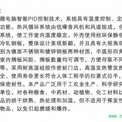 供各食品、医疗卫生、医药、生物、农业、科研等用作烘干、烘熟、热处理、加温,但不适用于挥发性、易燃、易爆等物品,以免引起爆炸。
