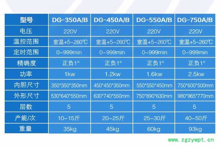 | DG-55 | 220 | 室溫+5 | 0~999分鐘 | ±1 | ±1 | 1.6 | 550×550×450 | 750×890×630 | 870×970×710 | 59.5 | 63.5 |