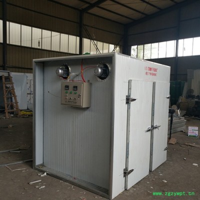1、本烘干箱利用电或烧煤、柴的热风炉为热源,用轴流风机对热交换器以对流的方式加热空气。热空气层流经烘盘与物料进行热量传递,新鲜空气从进风口进入烘干箱进行补充,再从排湿口排出,不断的补充新鲜空气与不断的排出湿热空气,这样来保持烘干箱内适当的相对温度,节约了能源。大部分热风在箱内进行循环,从而完成干燥。
