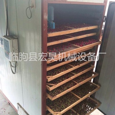 产品特点1.热风在烘干机内封闭循环,热效率高,节约能源.并配有热风回收装置,充分节约能源,该设备无二次污染,符合**食品卫生标准要求。2.箱内装有高强度循环轴流风机,促使箱内热风强制循环,使烘干机内上下温差小,让花存在于一个热风循环的状态下,有了足够的风量及热量,让花烘干的更均匀,时间上更快。3.独特的可调式分风板,让热风根据**需求热量的大小吹到花上,保证金银花均匀干燥,避免出现内外烘干不均的现象,此设备在烘干过程中无需倒盘,更能节约能源及人力。4.烘干机内温度自控,超过所设**高温度时自动断电,低于所设温度时自动供电工作;湿度自控,当箱内湿度达到需排湿的情况下,系统自动打开排潮口,及时排出箱内多余湿气,保证烘干所需合适的温湿度(含有自动加热,自动排潮系统,自动循环风系统). 5.烘干时间自动控制,真正实现自动化管理. 6.采用40-75度相对低温烘干,烘干后的,品质高,不破裂,色泽好,药效高,卖价好。7.该机噪声小,运行平稳,运行费用低,. 8.该机结构合理,维护方便,运行平稳,使用简单,只要是有电源的地方,接上电源**可使用。该设备内胆,加热系统均采用耐高温防潮湿配件,让顾客免除后顾之忧.