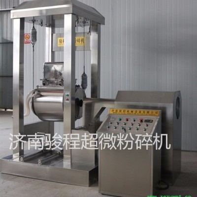 很多中药配方中都含有熟地、枸杞等含糖高的中药,对于含糖高的中药,采用普通粉碎机,粉碎过程中会随着温度升高而发粘,还会使物料升温生物活性物料中的热敏性物质与生物活性物质会因粉碎过程中的升温过高失活或损失,令热敏性物料的性能指标降低或大部分失效,很难达到超微粉碎的目的。骏程机械的工作人员通过多年实践,解决了熟地枸杞这类物料粉碎时的难题,粉碎前先进行一定的前处理,烘干处理,然后混合粉碎,即掺入一些干性的物料来吸收其粘性等,同时粉碎机配置低温装置。在粉碎原料达到常温、粉碎机内部为低温情况下粉碎,物料与粉碎机内部均呈低温状态。物料在低温下其韧性出现均匀地降低,物料在快速降温情况下,各部位由于不均匀收缩而产生内应力,极易引起薄弱部位破裂和龟裂,导致物料内部组织结合力降低,当受到一定的冲击时,极易破碎成细粉。对于纤维状、高韧性、高强度、含油、含糖的物料都可以达到超微粉碎。
