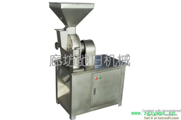 物料进入粉碎室,在高速旋转活动齿盘与固定齿盘间受齿冲击、剪切、磨擦及物料间相互撞击作用下被粉碎、经筛网筛选后即成为所需粉料。本机全部采用不锈钢材料制成。