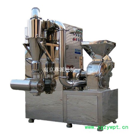 一、 概述 WF-300型中草药粉碎机,广泛用于药品、化工、食品、染料等行业的粉碎,并侧重于中草药材的粉碎。对纤维颗粒物料也均能粉碎。该产品按照**GMP管理规范设计,主要材料采用不锈钢,拆装方便、易清洗、移动灵活。外形美观大方,能耗低、产量高、超声小,操作方便。采用吸风装置连续采料,大大提高环境卫生。 本机具有以下特点: 1、300型中草药粉碎机结构是卧轴式,由加料斗振动给料器、主机箱、风机、关风器等组成。主机箱由后盖、前盖、前刀盘、前齿圈、分级室、可子卡子盘、主轴、轴承等组成粉碎室和分级室。前刀盘和卡子盘安装同一轴上。驱动源(电动机)装在机箱内,用三角皮带驱动主轴。 2、该机的主要原理,由于旋刀的高速运转,将物料在刀盘之间剪切碰撞压磨,而达到粉碎效果。该机不需要筛网,在粉碎过程中,利用风运将粉碎室内的物料进入分级室,运用卡子盘的间隙调整来达到控制物料细度。卡子盘间隙在2mm-4mm时物料可达到100-200目,在所需物料粗于120-200目时可将间隙调至5mm-8mm。