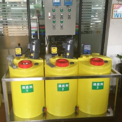 1、加药桶+计量泵+搅拌机+自动仪表+液位计+控制电箱