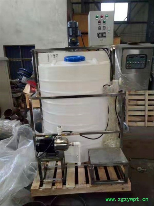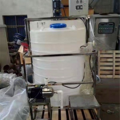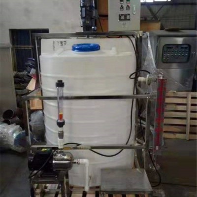 自动加药装置,主要有溶液箱、搅拌机、计量泵、Y型过滤器、安全阀、背压阀、止回阀、脉冲阻尼器、水位表、压力表、控制柜、安装平台等组成一体化安装在一个底座上。用户只需将组合式加药装置安放在加药间,将加药管接好接通电源即可启动投入运行,在运行过程中自动检测流体的酸碱度智能判断并加投相应的药液,这种工厂化的整套装置,可大大减少设计和现场施工的工作量,基本实现无人看管,对整机的质量、安全和现场投运提供了可靠的保证。