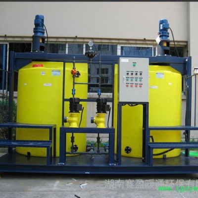赛盈全自动加药装置由计量箱(药剂贮罐)、计量泵(加药泵)、自动控制系统、连接管路等组成。在水处理行业等领域中全自动加药装置将某种液体连续自动地注入到另一种液体中成为一种混合液,或者使加入的药剂与液体中存在的某种组分发生化学反应,以达到预期的工艺要求。为达到**效果,在工况变化的情况下,全自动加药装置对所加化学药剂量自动跟踪调节控制加药速度,因此在这种装置中我们采用了先进的自动控制方式来控制加药量。