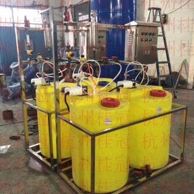 磷酸盐溶液为人工配制,一般配制的浓度为5-8% 将配好的溶液加到药箱中由搅拌系统自行搅拌,(搅拌器可以根据用户需要自己设定,如**一夜24小时每隔2小时工作一次,工作一次的时间为30分钟,以这样的一个周期搅拌。还可以设制一周的天数,可以在一周的天数中需要那天工作,那天不需要工作,如需要星期一到星期五都工作,星期六和星期天不工作)。 使溶液搅拌均匀,以备使用。