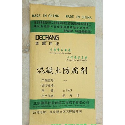 混凝土防腐剂是新一代防止钢筋混凝土腐蚀的一种全新产品,它突破了钢筋混凝土防腐蚀的传统理念,开创了使用外加剂防腐的新方法,从根本上解决了传统防腐蚀方法的诸多不足和局限性。使用该防腐剂可以使混凝土具有抗盐类离子侵蚀、抗冻融循环破坏及高抗渗透等良好性能。特别适用对混凝土建筑物既要求防腐又要求抗渗的工程,另外掺入该混凝土防腐剂还可以使混凝土收缩值减小,便于大体积混凝土施工。