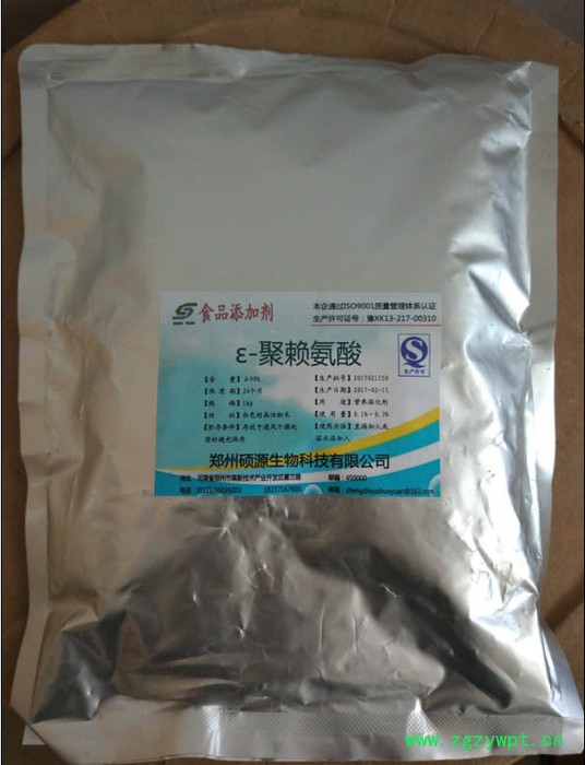 ε-聚赖氨酸(ε-Polylysine, ε-PL),是白色链霉菌的代谢产物。ε-聚赖氨酸对革兰氏阳性菌和阴性菌、霉菌、病毒等都有明显的抑制作用,对其它防腐剂不易抑制的革兰氏阴性菌大肠杆菌、沙门氏菌抑菌效果非常好。而且对耐热性芽孢杆菌和一些病毒也有抑制作用,抑菌效率高。ε-聚赖氨酸是赖氨酸的直接链状聚合物,能在人体内分解为赖氨酸,可以完全被人体消化吸收,不但没有任何毒副作用,而且可以作为一种赖氨酸的来源,是一种天然、高效、安全的食品保鲜剂。-聚赖氨酸已于2003年10月被FDA批准为安全食品保鲜剂,被广泛应用于食品保鲜。在食品应用中,ε-聚赖氨酸多与其它物质配合使用,如酒精、有机酸、甘油酯等。可用于米饭、糕点、面点、酱类、饮料、酒类、肉制品、罐头等的防腐保鲜。建议用冷开水或蒸馏水将本品配成5-10%的溶液,再加入食品中充分混匀,应采用分级扩大法添加,以达到均匀混合的目的。本品与其它物质复合使用可达到更好的效果。能有效抑制革兰氏阳性菌、革兰氏阴性菌、霉菌和酵母菌等; 延长食品货架期; 热稳定性好,高温下不分解(120oC,20min),在产品热处理前后都可以使用;添加量低,而且可以保障食品品质,一定程度上节约了成本;可以代替部分化学防腐剂,满足客户及消费者对天然防腐剂的需求。